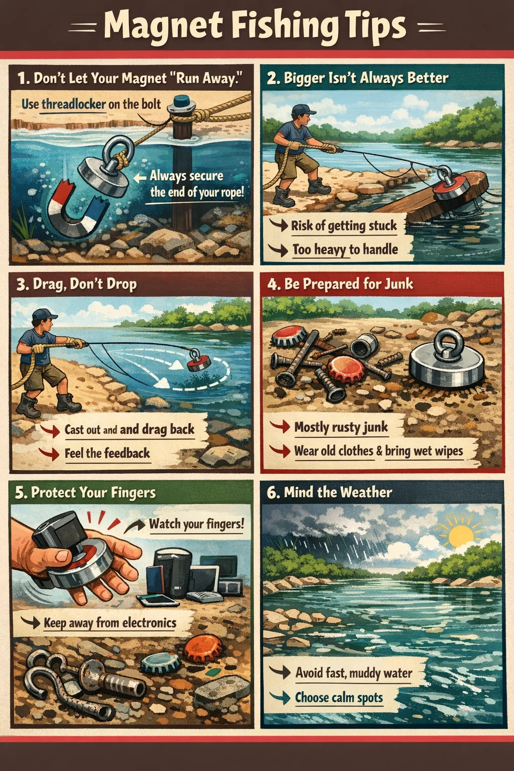 Maraming mga tao, kapag nagsimula silang mag-magnet fishing, iniisip na ang kailangan lang nilang gawin ay magtapon ng magnet sa tubig. Ngunit pagkatapos ng ilang pagtatangka, lahat ay mananangis, "Kung alam ko lang ang mga tip na ito nang mas maaga!"